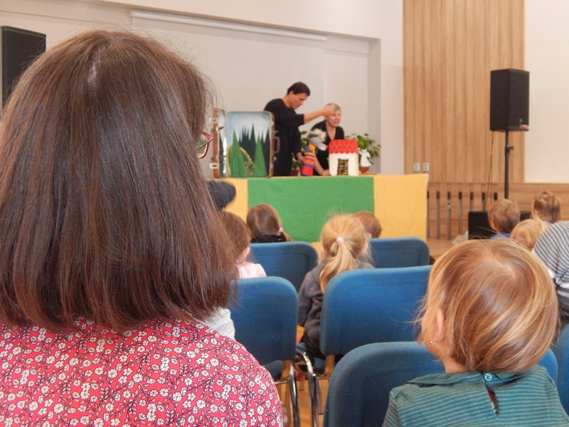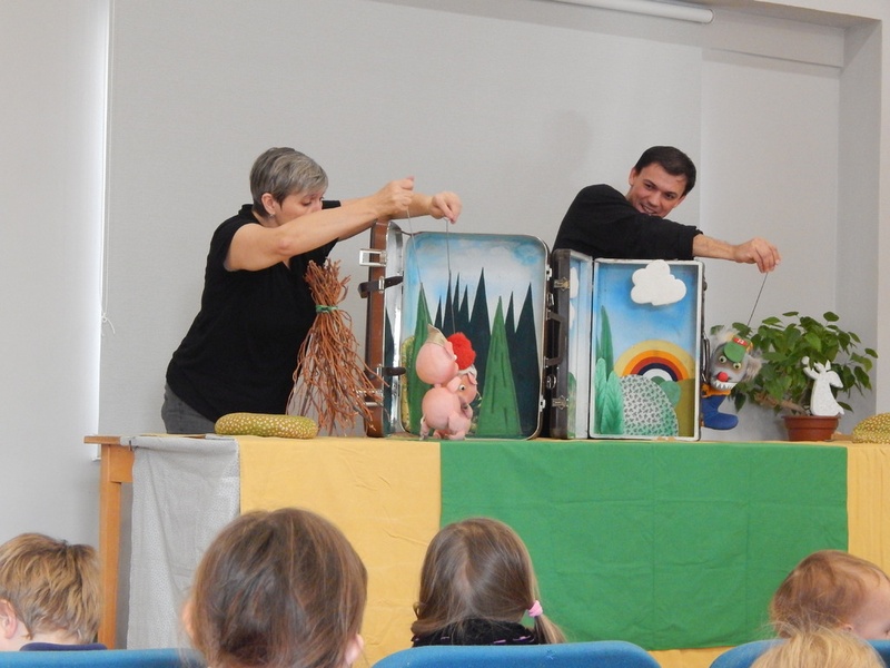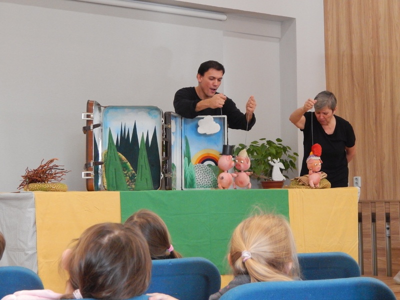 Dopoledne s pohádkou pro začátečníky byl název naší pozvánky pro děti, které se poprvé vydaly do "divadla". Dvě pohádky - O třech prasátkách a O kůzlátkách zahráli herci Divadla Vratislava Schildera.