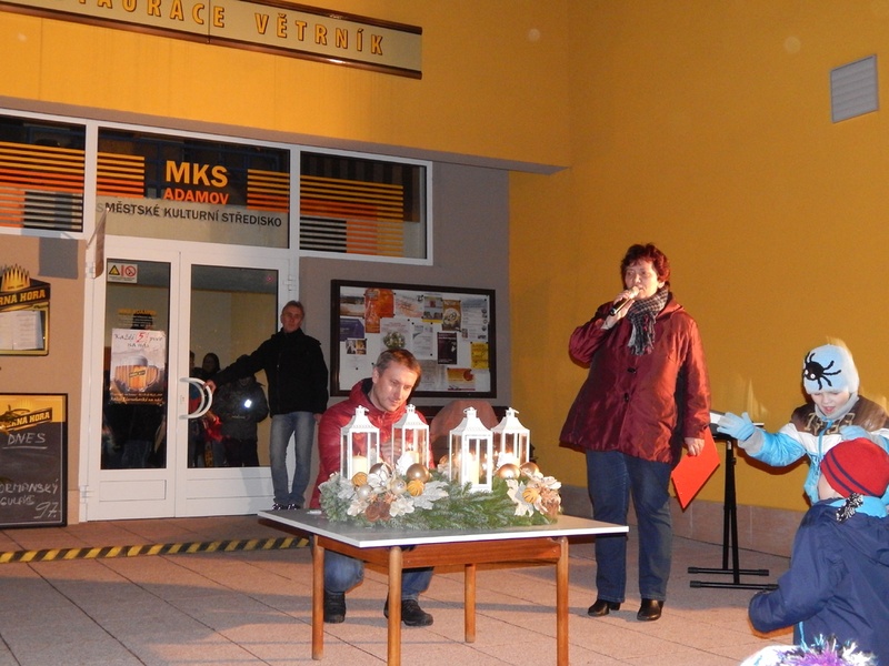 V pořadí TŘETÍ setkání v rámci čtyř ADVENTNÍCH ZASTAVENÍ, které se konalo 13. prosince na terase MKS, se neslo ve velice příjemné atmosféře. Napomohlo k ní nejen vystoupení žáků třetí třídy ZŠ a MŠ Adamov z Ronovské ulice, ale také výborný nápad patrona tohoto setkání, kterým byla firma EDEN. Na akci byl přítomen kromě dalších pracovníků firmy i ředitel společnosti pro Evropu pan Zbyněk Husák. Pro přítomné připravili nejen milé dárky, ale také občerstvení v podobě "svařáčku", sněhových trubiček a tradičního chleba se sádlem a cibulí.