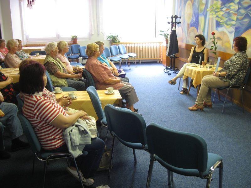 Herečku Petru Jungmanovou zná někdo z televizních seriálů (Místo nahoře, Místo v životě), někdo z doby, kdy byla členkou hereckého souboru Městského divadla Brno, a mnozí vědí, že byla manželkou zesnulého skvělého herce Vladimíra Dlouhého. O tom všem si povídala Petra při posezení u kávy s přítomnými návštěvníky této akce 13. června v salonku MKS. Nezapomněla ani na svoje dva syny, devtiíteletého Janíčka a Jiříčka. Setkání ukončila svým tradičním: /S/mějte se!