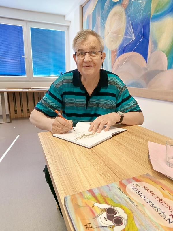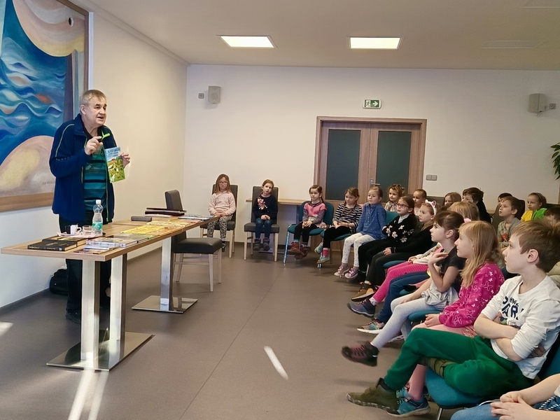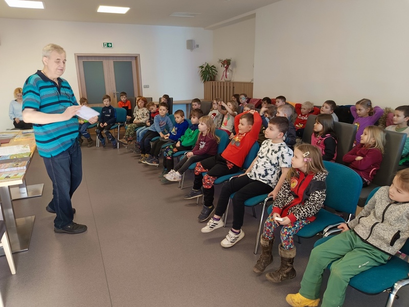 K březnu patří kniha a ke knize patří pan spisovatel. Za námi zavítal pan Jiří Šandera, který si povídal s dětmi ze ZŠ a MŠ o knihách, které pro ně napsal.