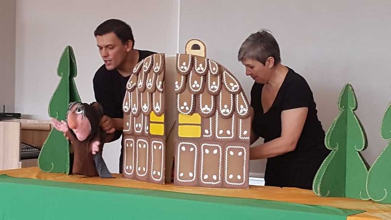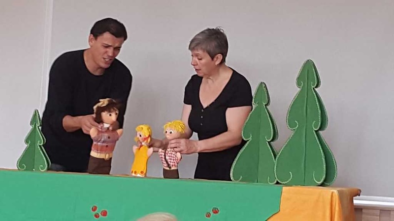 Ve čtvrtek 4. října 2018 jsme pozvali děti ze školky i děti s rodiči na další Dopoledne s pohádkou. Známé pohádky Červená Karkulka a Perníková chaloupka zahráli herci Loutkového divadla Vratislava Schildera - Olga Marková a Vilém Čapek.