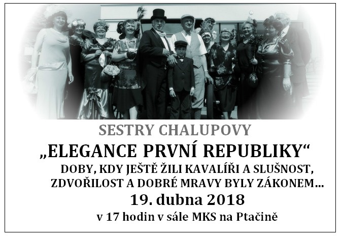 19. dubna 2018 - SESTRY CHALUPOVY v 17 hodin v sále MKS na Ptačině.