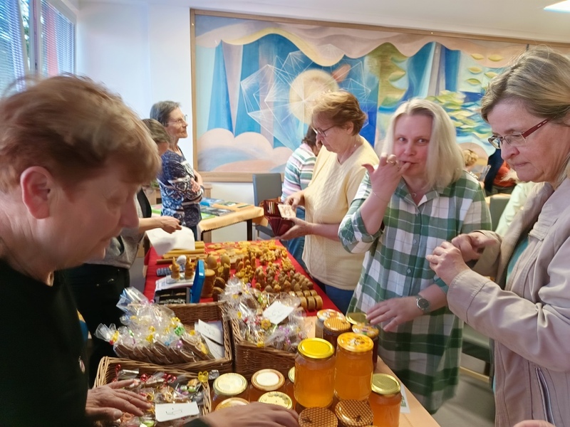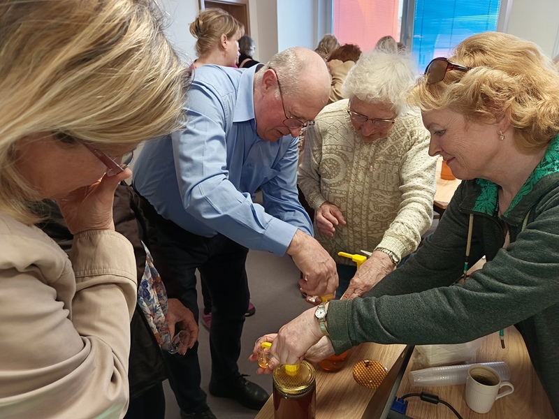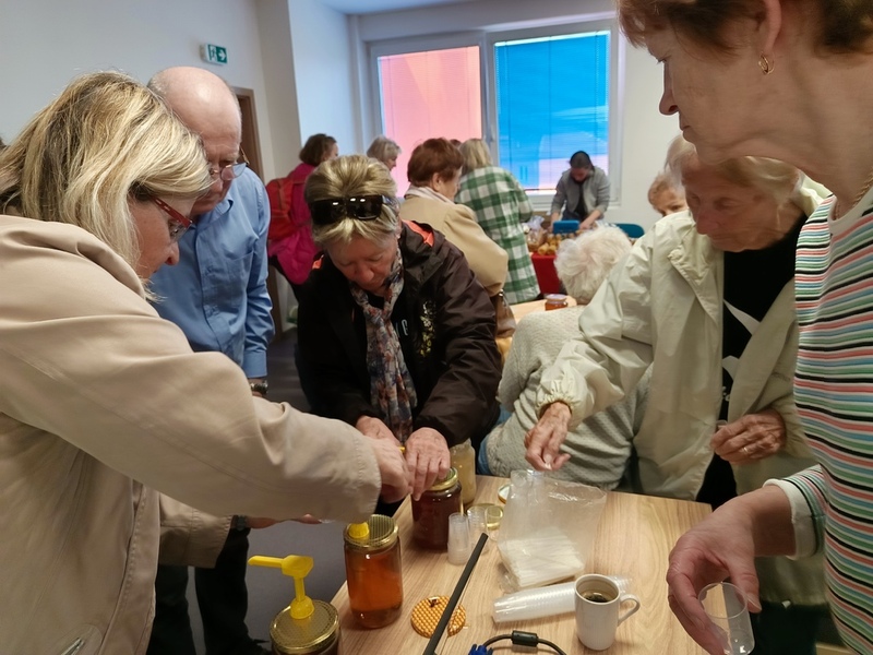 se konalo dnes, v pondělí 14. dubna 2025. Zájem o med, perníky, drobnosti z vosku i přednášku spolupořadatele akce Jana Strouhala byl velký. Příště připravíme odpoledne o medu a jeho účincích pro děti ze školní družiny. I ty se mohou těšit na závěrečnou ochutnávku medu.