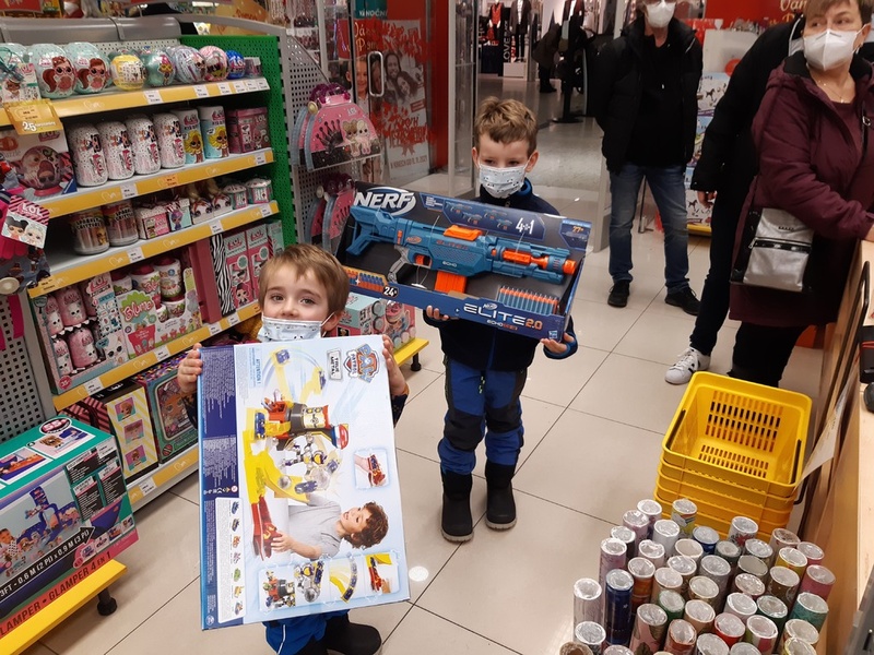 U vánočního stromu jsme předali 12ti dětem odměny za novoročenku, kterou namalovaly do soutěže o tu nejzajímavější. Dětem jsme (spolu s vysvětlením) předali poukázku do brněnské Vaňkovky. Moc nás proto potěšila fotografie dvojice výherců, kteří hned spolu s rodiči vyrazili provést výměnu poukázky za něco, co si kluci přáli a vybrali. V pondělí si výhru vyzvedla i poslední výherkyně.