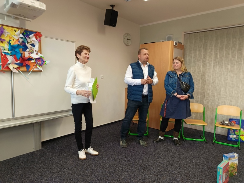 V pátek, 10. dubna 2026 jsme si do Adamova domluvily pracovní schůzku s paní senátorkou Jaromírou Vítkovou. Naše setkání využíváme vždy k domluvě kolem připravovaných akcí, které paní senátorka sleduje a podporuje. Představili jsme jí výstavu kraslic a poté se vypravili i se starostou města Romanem Pilátem do školy na Ptačině, aby se paní senátorka setkala s dětmi ze školní družiny, jejichž práci si vybrala na letošním ročníku Salonku dětských adamovských umělců k udělení osobní ceny. Tak, jak se těšila ona na děti, těšily se děti na ni... Připravily si krásnou společnou píseň a stihly si s paní senátorkou i trošku popovídat. Setkání bylo krátké, ale velice milé a příjemné.