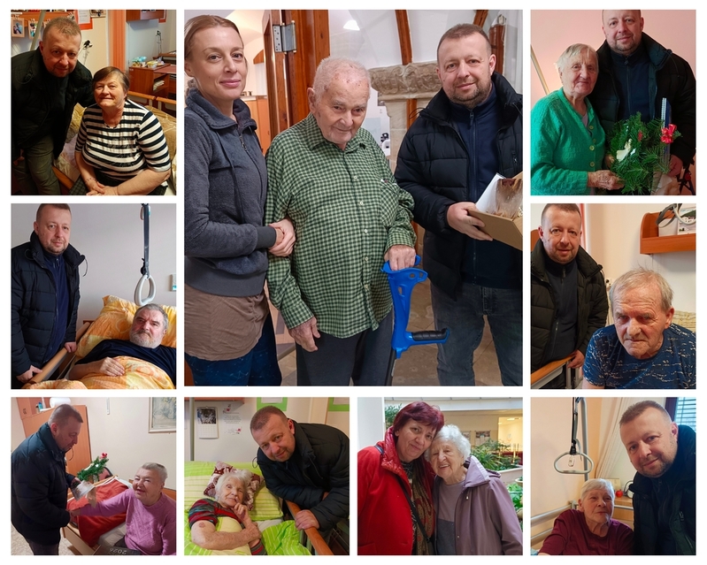 Každý rok před Vánocemi se spolu se starostou města vydáme na návštěvu bývalých obyvatel Adamova, kteří nyní pobývají v domovech pro seniory v Blansku a v Černé Hoře. Dnes jsme navštívili celkem 15 klientů domovů a předali jim pozdravy přátel, známých, sousedů a spolupracovníků spolu s malými dárky v podobě přání, vánoční větvičky a kalendáře našeho města. Mnoho z nich pozdrav i návštěva potěšila a my rádi pozdravy vyřizujeme zase směrem opačným - do Adamova. Fotografie byly pořízeny se souhlasem jednotlivých klientů domovů.