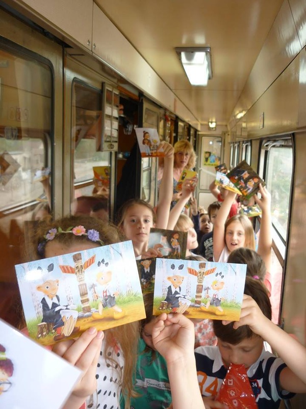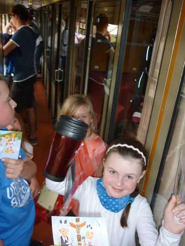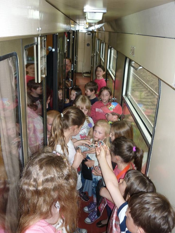 Marně jsme si my, dospěláci, doufali, že děti po celodenním zápřahu ve vlaku zpět usnou a my budeme mít čas na zdřímnutí také. Omyl - děti nabraly druhý dech, a tak bylo ve vlaku hodně veselo a rušno. Proběhlo i slibované vylosování výherců "soutěže do vlaku" a rozdání upomínkových předmětů od Ing. Došlého. Odměna čekala i na jednoho dospěláka, který nejlépe radil. Z termohrnku se mohla radovat zásluhou vnučky Jolanky babička Hanka.