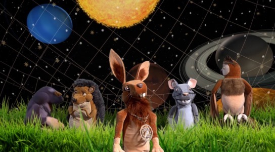 Ježek, zajíc, krtek a sova jsou čtyři kamarádi, kteří se sešli na kraji lesa, aby prozkoumali hvězdářskou základnu. Všechno je pro ně nové, nikdy nic podobného neviděli, a když vidí startovat raketu, jsou z toho úplně paf. Nikdo netuší, o co by se mohlo jednat, a tak vymýšlejí jeden bláznivý nápad za druhým. A snad by se tam dohadovali dodnes, kdyby nepotkali chytrého myšáka, který jim vše vysvětlil. Protože myšák strávil celý život mezi vědci na hvězdářské základně, ví toho o vesmíru opravdu hodně.