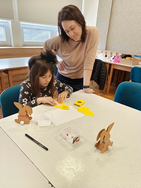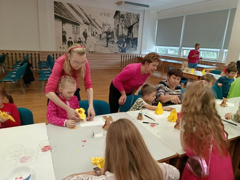 V neděli 13. dubna se v MKS sešly děti s jejich doprovodem, aby si vyrobily drobné velikonoční dekorace a pobavily se ve společnosti Brněnských písničkových tetin. Tetiny si s dětmi povídaly o velikonočním čase, soutěžily a zahrály pohádky.