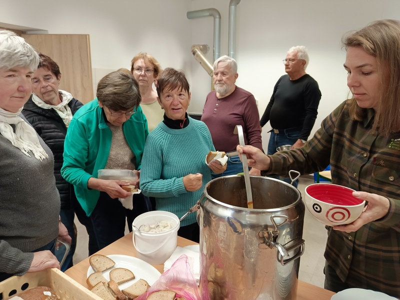 Říjen je většinou posledním měsícem, kdy je příjemné se vypravit na naše tradiční vlastivědné výlety pořádané ve spolupráci se ŠLP Křtiny, panem Borkem Nejezchlebem, naším věrným a skvělým průvodcem v jedné osobě. Počasí nás občas přinutilo vytáhnout z batohů deštníky. Tentokrát jsme zájemce pozvali do okolí Rudice - do okolních lomů, k Máchovu památníku, do Dykovy lesní školky, ke Klostrmanově studánce... Se zámeckou restaurací jsme se dohodli na zajištění zvěřinového guláše do přírody. Nakonec jsme byli velice vděční za možnost si ho dát v zázemí, které nám poskytli v Dykově lesní školce. Děkujeme ŠLP Křtiny za výbornou spolupráci a už teď se těšíme na další zajímavé poznávací výlety v jarních měsících příštího roku.