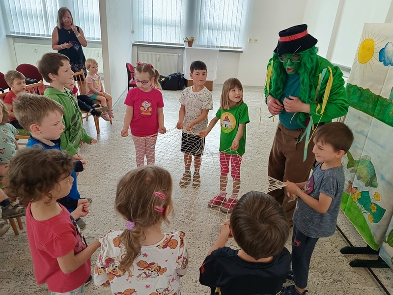 ... jsme připravili na 5. června 2025. Děti pomohly vyřešit "Trable vodníka Toníka". Představilo se Dobře naladěné divadlo.