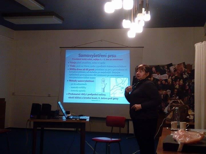 24/11/2016 - Přednáška společnosti Mamma Help byla určena ženách všech věkových kategorií a určitě hodina prožitá ve polečnosti dobrovolnic této společnosti byla hodinou velice užitečnou. Zaměřena byla na prevenci onemocnění rakovinou prsu. Kromě statistických informací bylo setkání zaměřeno na poučení (možná dřív i naučení) provádět si samovyšetření, informování o preventivních vyšetřeních apod.