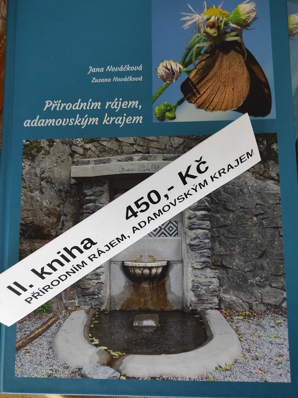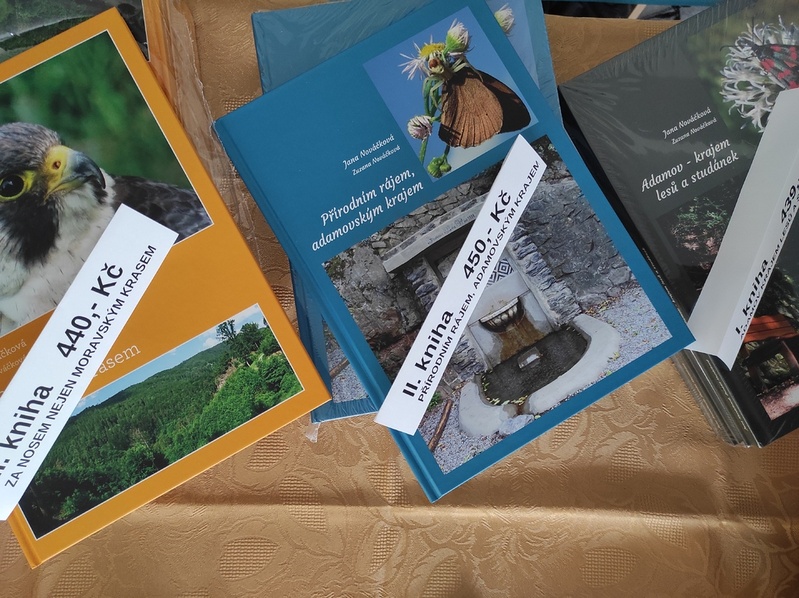 Po dobu trvání výstavy Zdeňky Knechtové ve Společenském centru na Horce si zde můžete zakoupit knihy Jany a Zuzany Nováčkových. I. kniha Adamov krajem lesů a studánek za 439 Kč II. kniha Přírodním rájem, adamovským krajem za 450 Kč III. kniha Za nosem nejen Moravským krasem. Knihy jsou k zakoupení také v MKS Adamov (po domluvě na tel. 607 518 104)
