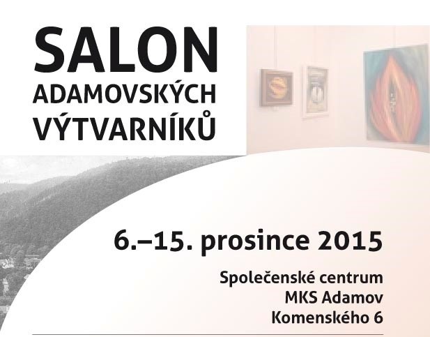 Srdečně vás zveme na vernisáž výstavy Salon adamovských výtvarníků, a to v neděli 6. 12. 2015 v 15 hodin do společenského centra na Komenského ulici. V kulturním programu vystoupí Sára Nová.