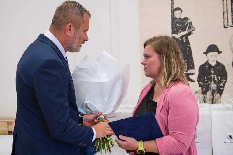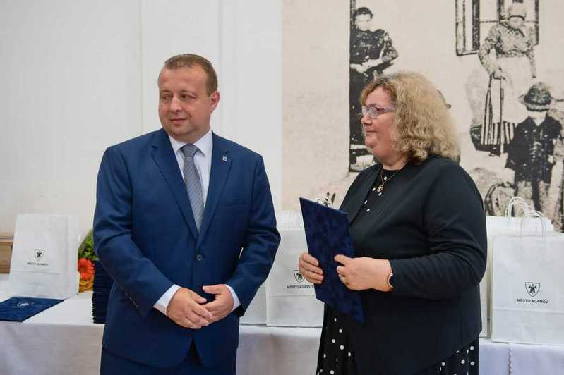 Dne 3. června 2024 se v MKS konal slavnostní podvečer u příležitosti 60. výročí povýšení Adamova na město. Jeho součástí bylo předání ocenění kolektivům a jednotlivcům, kteří se aktivně zapojují do volnočasých aktivit ve prospěch obyvatel města, ale především si Mgr. Jana Burianová odnesla ocenění nejvyšší - Čestné občanství. In memoriam byla mezi osobnosti města zařazena paní Mária Koudelová. V kulturním programu vystoupila Miroslava Časarová, akci moderoval Jiří Kokmotos. Foto: Jiří Baisa