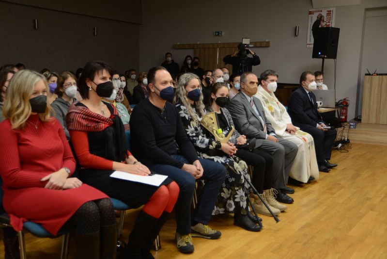 Sváteční den 17. 11. byl vybrán jako ten nejvhodnější pro požehnání vlajky našeho města. Slavnostní setkání se konalo v MKS za přítomnosti hostů a těch, kdo se o vlajku pro naše město zasloužili. Velký dík patří starostovi města Bc. Romanu Pilátovi, předsedovi KIK PhDr. Jaroslavu Budišovi, Lukáši Malému, Dr. Pavlovi Lazárkovi, členům KIK, Aleně Horákové a Markovi Černému, kteří všechno dění zachytili v dokumentu, který se na setkání promítal, zástupci firmy Velebný a Fam (zhotovitelé vlajky) a řada dalších. K příjemné atmosféře přispěli svým vystoupením David Kříž, Jan Jiráček, žáci a učitelé ZUŠ Adamov, moerátorka večera Jarka Vykoupilová a mistr zvuku Vít Kraváček.