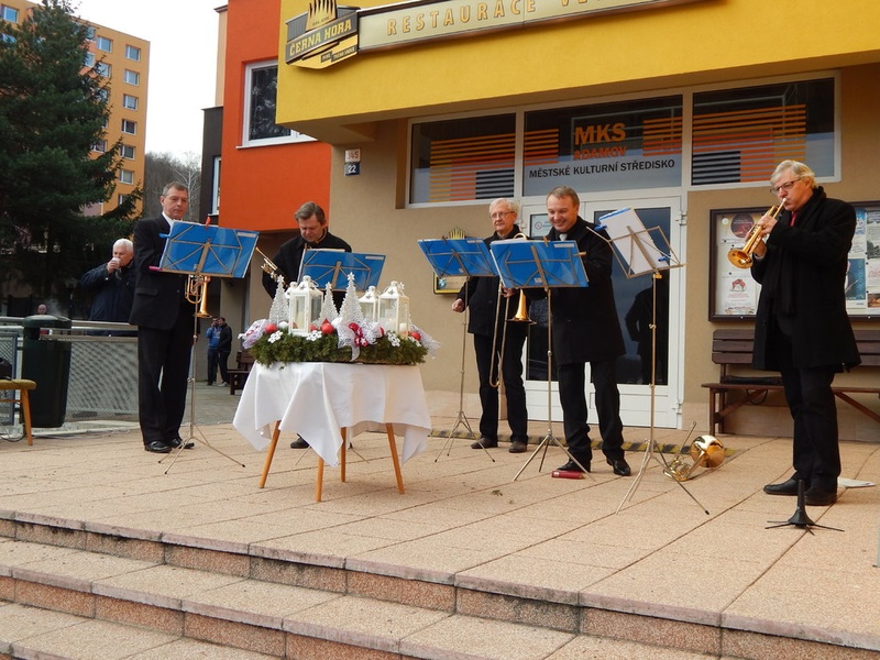 Adamovští vánoční trubači :) nechyběli ani letos. Zpříjemnili nám sváteční odpoledne a Štědrý den. Díky teplému počasí se každý mohl zdržet aniž by zmrznul jako některé jiné roky a poslechnout si skladby a koledy v podání trubačů. I letos bylo možné odnést si domů Betlémské světlo. Za přípravu občerstvení děkujeme restauraci Větrník.