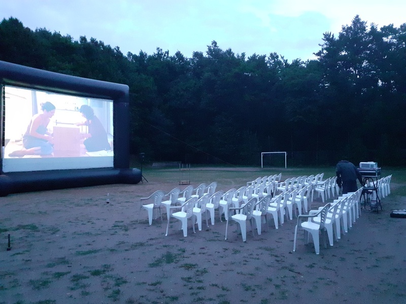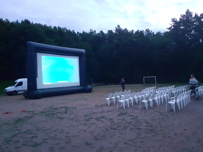 Na třetím letním kině se nám odrazilo počasí. Celé odpoledne pršelo a také večer se počasí moc neumoudřilo. Ale předpověď slibovala večer bez deště, tak jsme promítali tak, jak bylo avizováno. Film Bábovky s Biografem Láska...