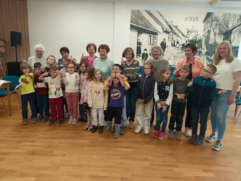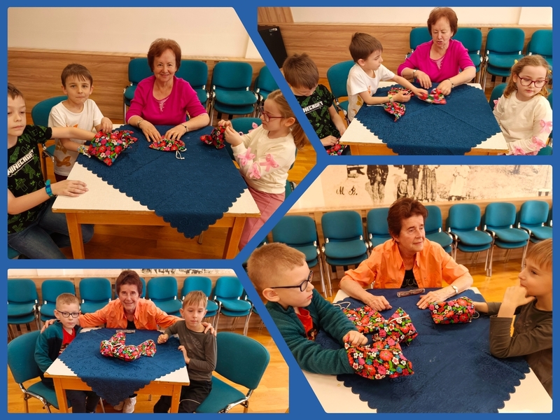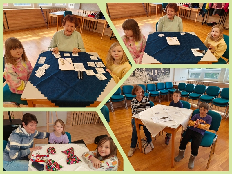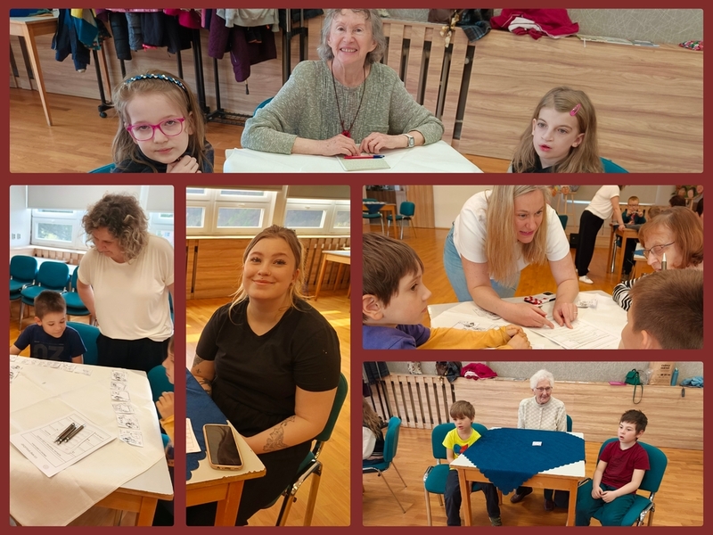 Na konci března jsme zahájili další kurz trénování paměti s paní Evou. Dnes je další lekce, ale je úplně jiná než ty ostatní... Pod heslem "děti pomáhají seniorům, senioři pomáhají dětem" /v našem případě děti pomáhají babičkám a babičky pomáhají dětem/ jsme na lekci přizvali děti z 1.A - třídy paní učitelky Helenky Ličkové. Vytvořili jsme několik "pracovišť", kde se postupně vystřídají skupinky, které tvoří jeden senior a několik dětí. Teď už se se ze všech stran ozývají názvy pohádek, radost ze získaných pexesových kartiček a můžeme vidět jen samé úsměvy na rtech dětí i dospělých.