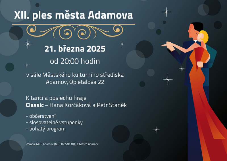 Předprodej vstupenek v MKS Adamov - 5. března 2025 v době od 14:00 do 19:00 hodin - 6. března 2025 v době od 9:00 do 12:00 hodin. Telefonická rezervace v uvedené době na tel. 607 518 104 Cena slosovatelné vstupenky 300 Kč