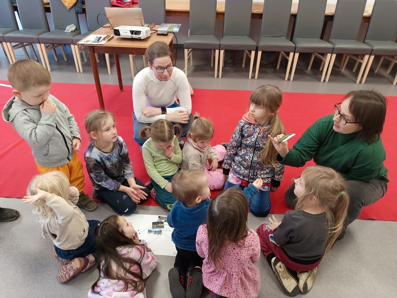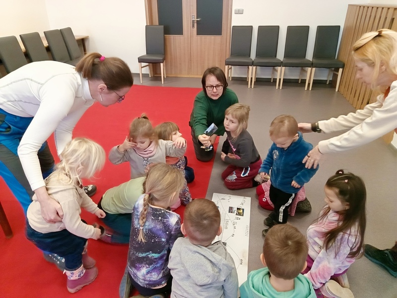 Úterní dopoledne patřilo dětem z MŠ Jilemnického. Paní knihovnice Jana jim představila současný, ale především dřívější Adamov, ukázala jednotlivé části Adamova a jeho okolí. Na závěr besedy měly děti umisťovat na náčrt města obrázky známych budov.