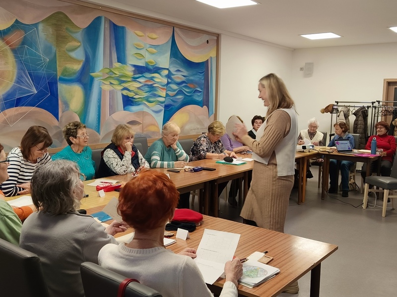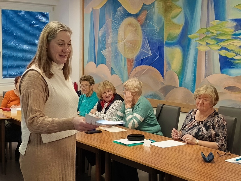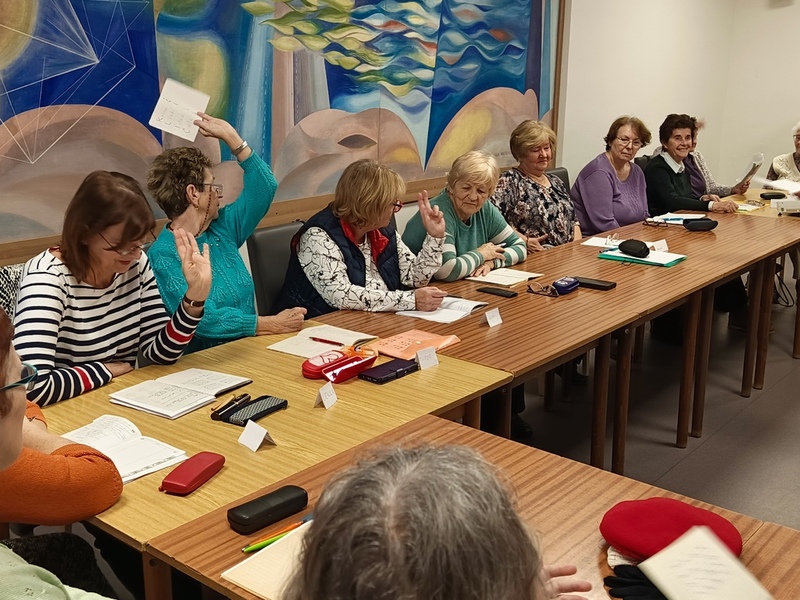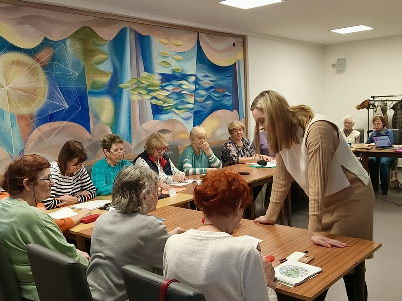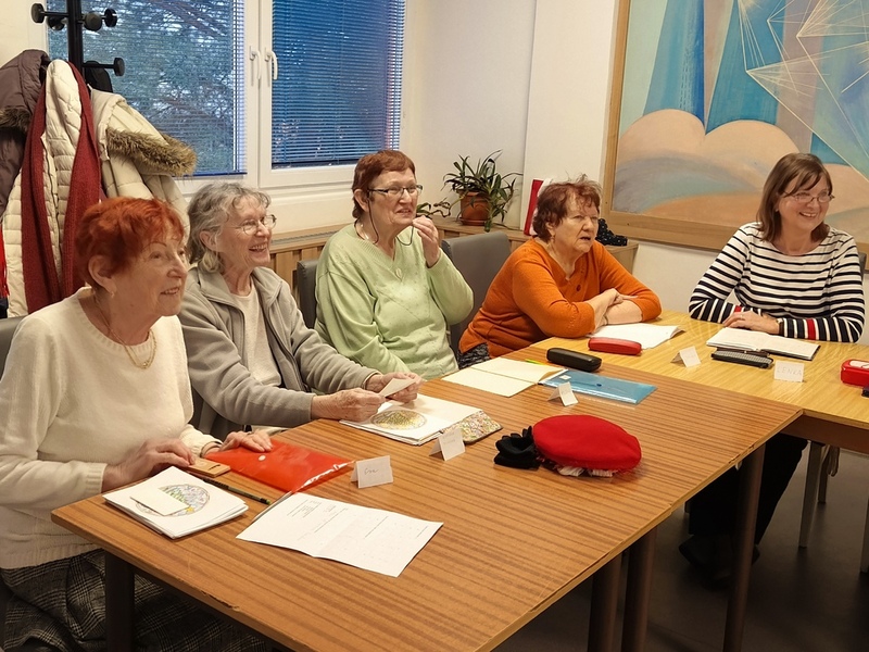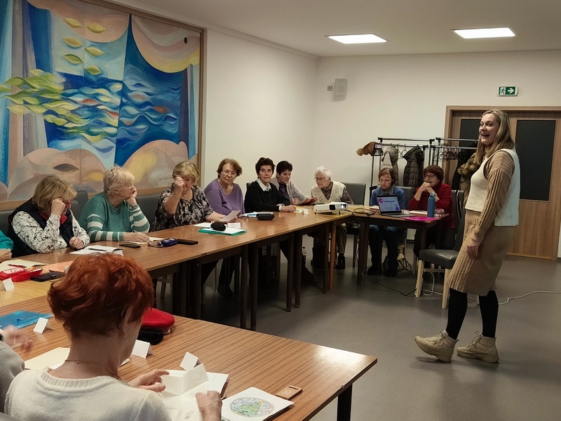 Další trénování paměti bylo spojeno s příslovími. Lektorka Eva je přeměnila do složitých vět a účastnice kurzu je z nich musely poznat. Ale to byl po kontrole domácího úkolu jen začátek této lekce...