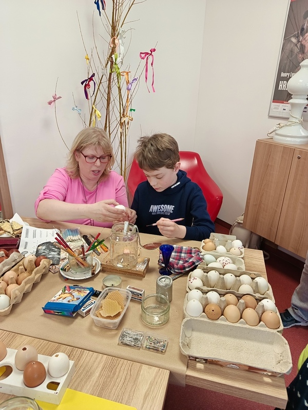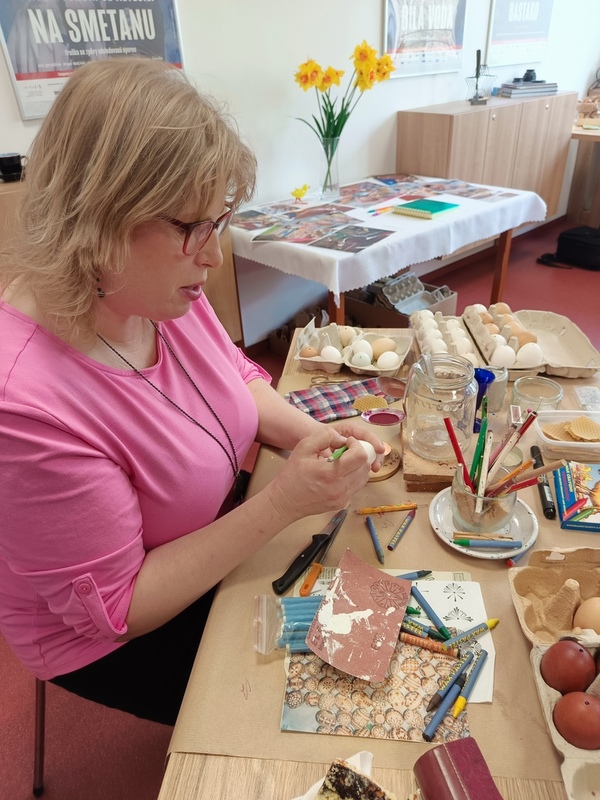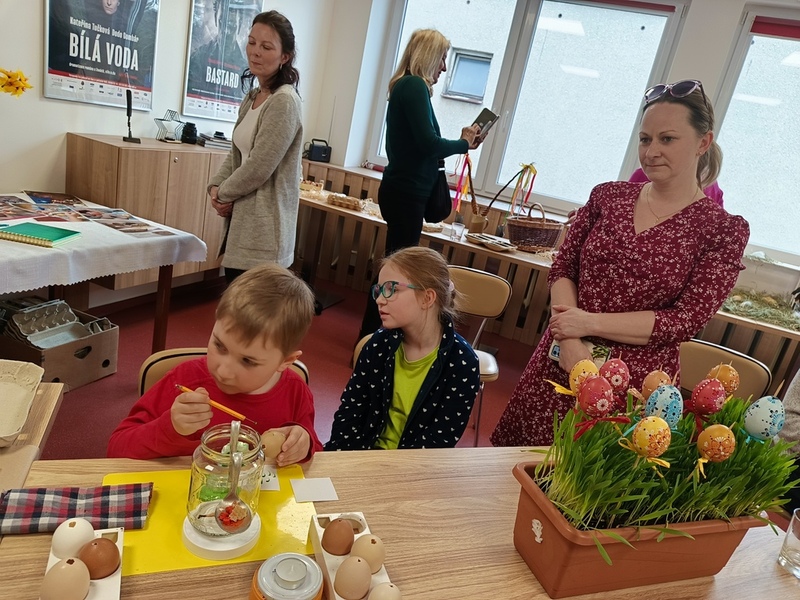 Nedělní odpoledne 6. dubna patřilo v MKS zahájení výstavy kraslic Lenky Provazníkové. V naší výstavní místnosti můžete vidět 275 vajec, které prošly rukama paní Lenky. Většina z nich je již krásně ozdobena voskovou technikou, na některé zdobení teprve čeká. Místnost je dozdobena řadou dekorací, například žílami, které zhotovil manžel paní Lenky - Martin. Při vernisáži i setkání s dětmi ze školní družiny mohli malí i velcé návštěvníci vidět, jak se vosková technika dělá, dokonce si řada zájemců techniku vyzkoušela.